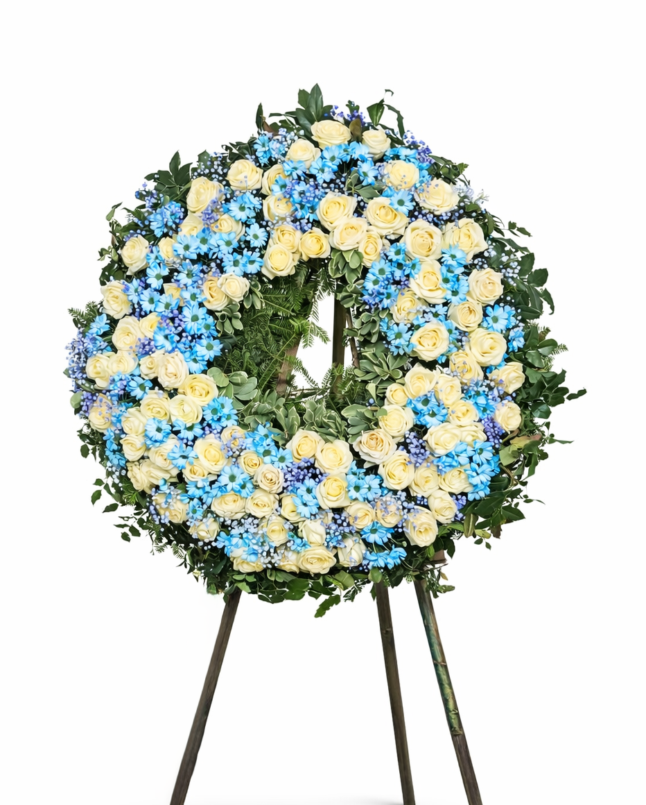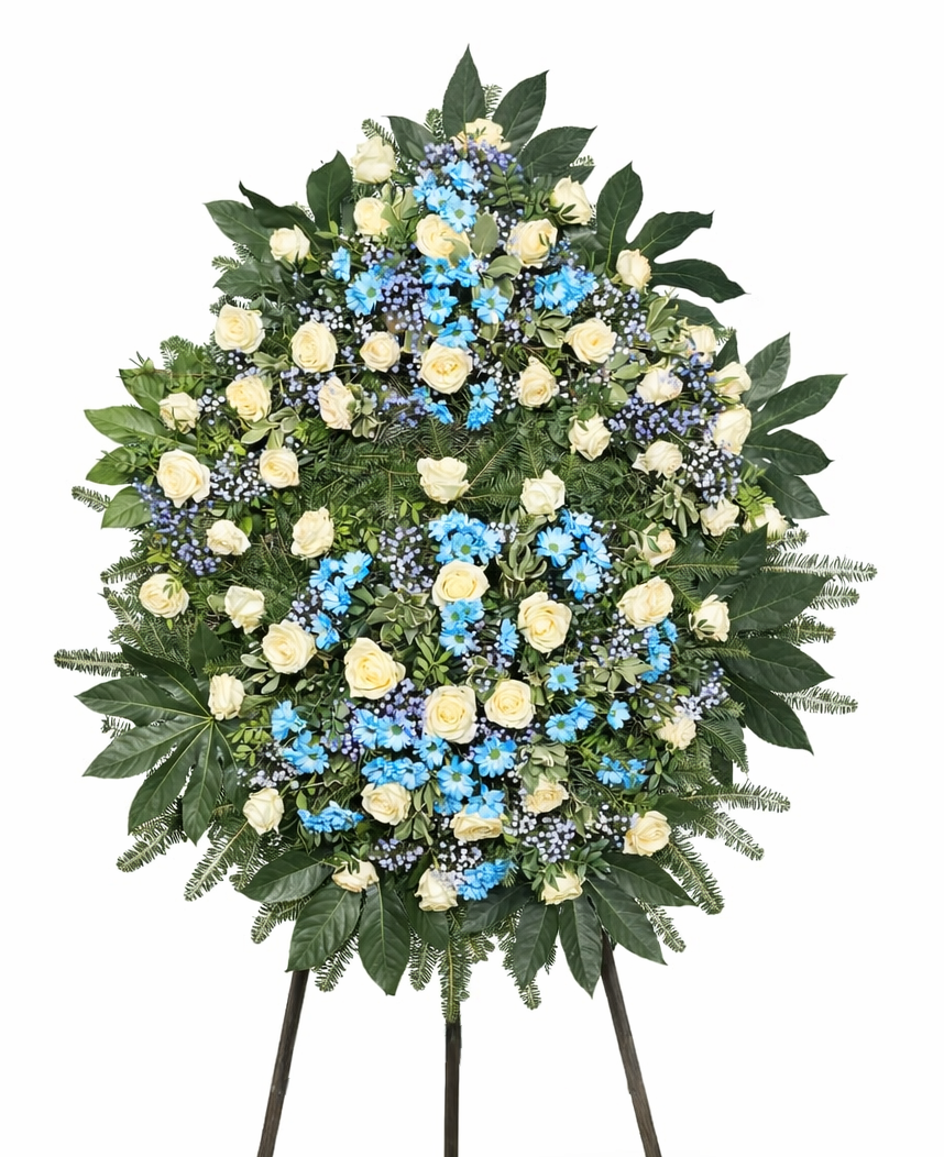 Tworzymy kompozycje wyłącznie z świeżych kwiatów i sprawdzonych dodatków florystycznych. Każdy wieniec układany jest z dbałością o estetykę i trwałość, tak aby stabilnie prezentował się w czasie ceremonii. Oferujemy zarówno klasyczne, jak i nowoczesne formy, w różnych rozmiarach i kolorystykach – zawsze dopasowane do Państwa potrzeb.