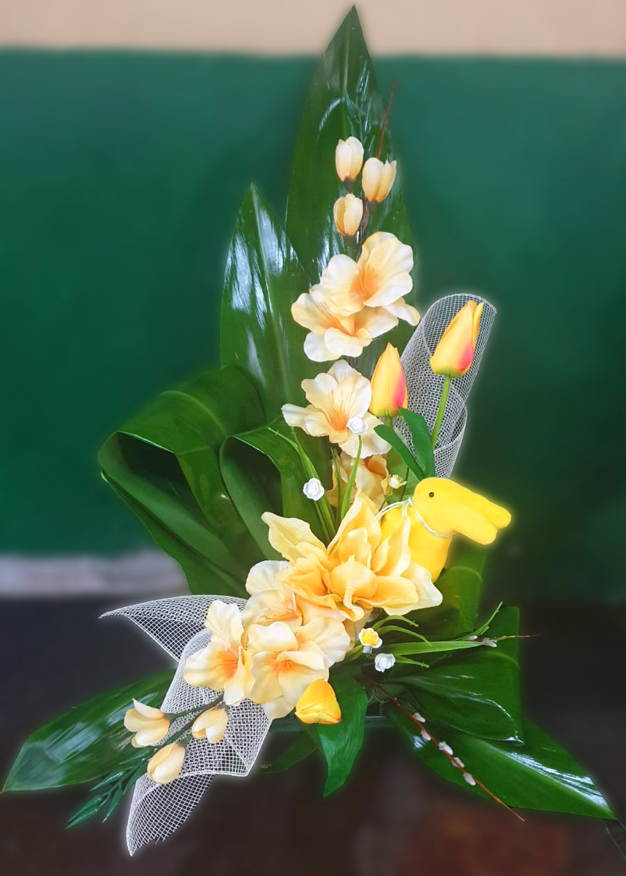 Lekka kompozycja w słonecznych odcieniach żółci i zieleni, idealna do wyrażenia pamięci w pogodny sposób.